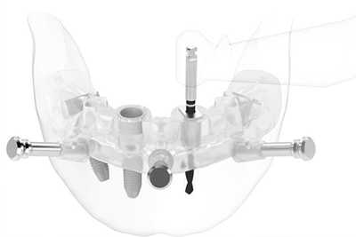 当院では、サージカルガイドを使ったインプラント治療を行っています。サージカルガイドとは、インプラントシミュレーションシステムで、よりインプラント治療の安全性が高まり、誤差の少ない、確実なインプラント埋入が可能となります。